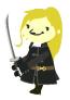 ウケ狙いで鎌とかハンマァとか弓矢とか持たせようかと思いましたが、誰なのかわからなくなるなと思い、無難に刀を持たせてみました。